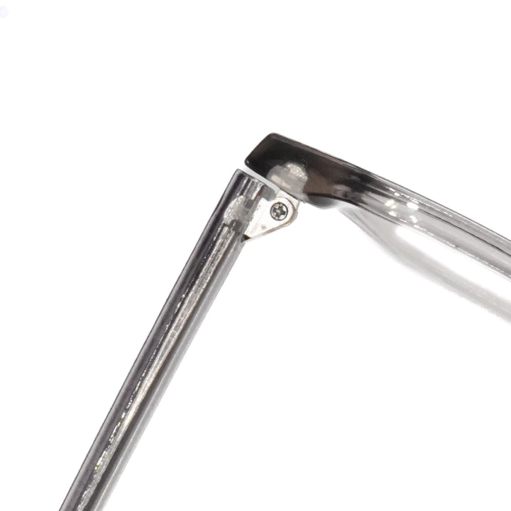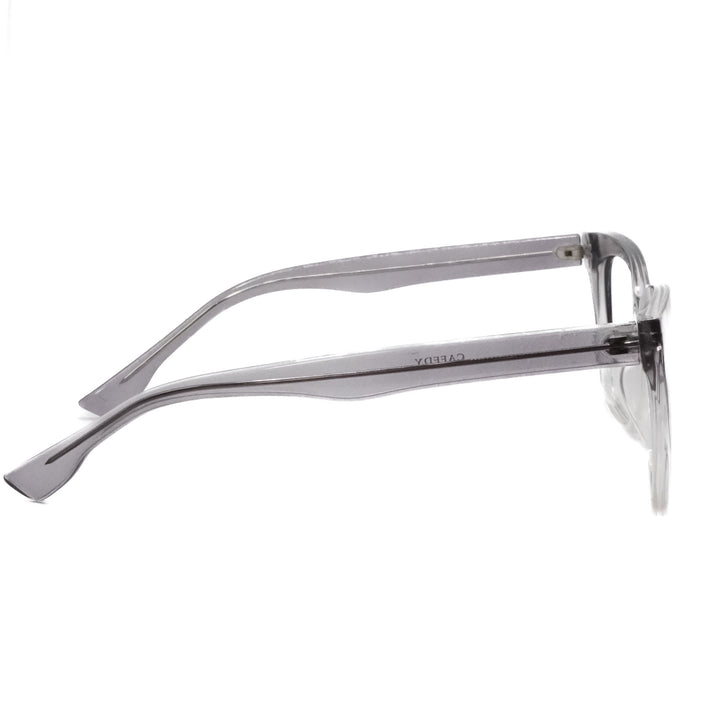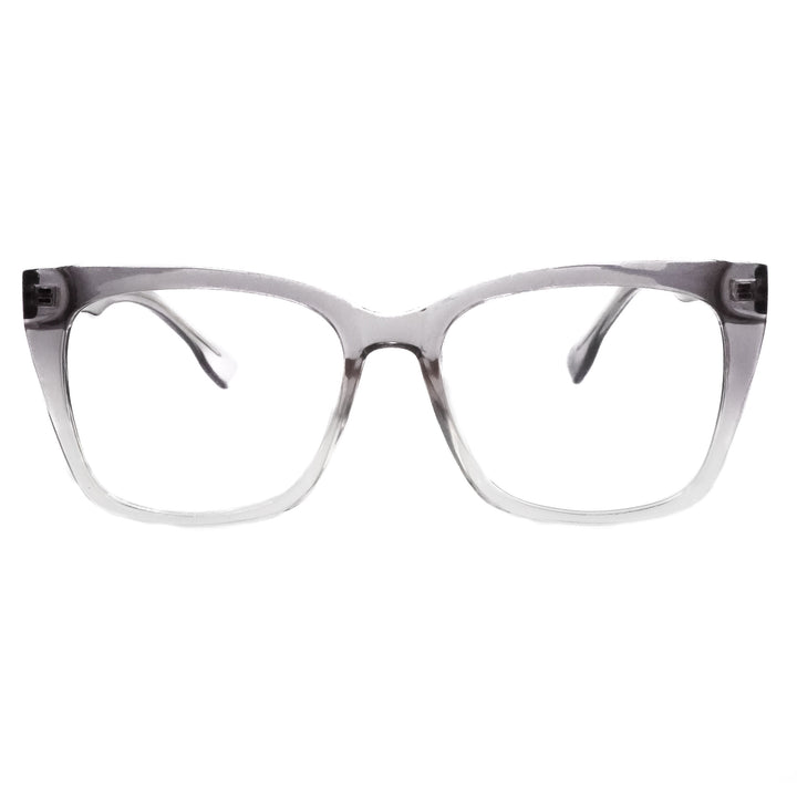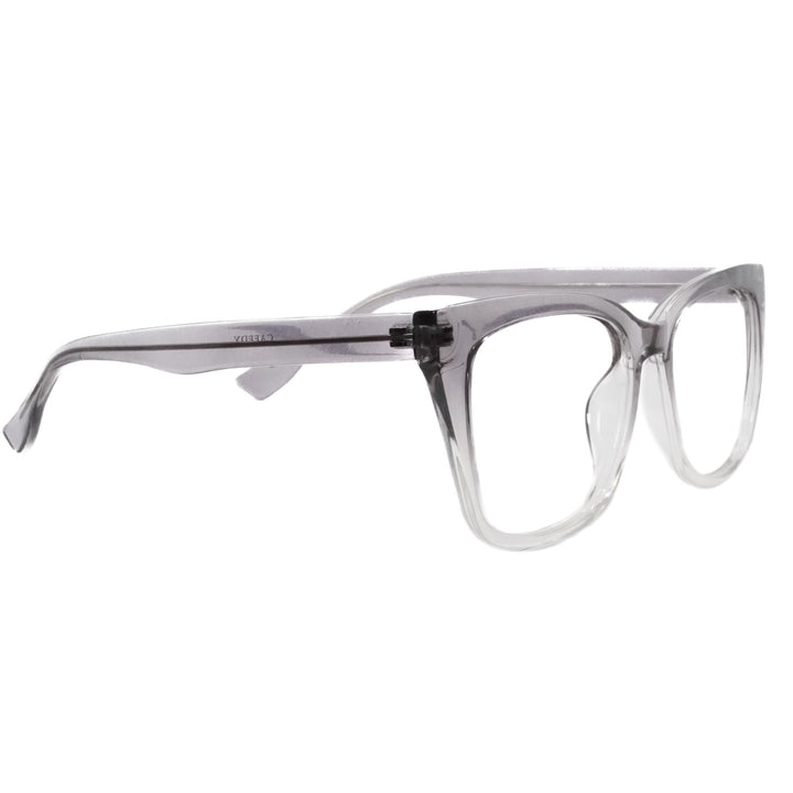 Armazón de acetato con frente cuadrado y acabado translúcido en gris degradado. Su diseño sobrio y moderno proyecta elegancia minimalista, ideal para un look versátil y sofisticado.