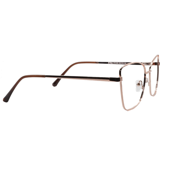 Armazón unisex con diseño metálico ligero y elegante en forma de mariposa. Su estilo moderno y sutilmente femenino resalta la personalidad con un aire sofisticado pero desenfadado, ideal para un look fresco y con estilo propio.