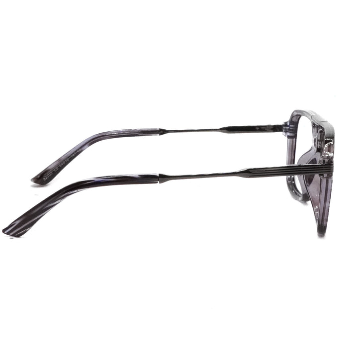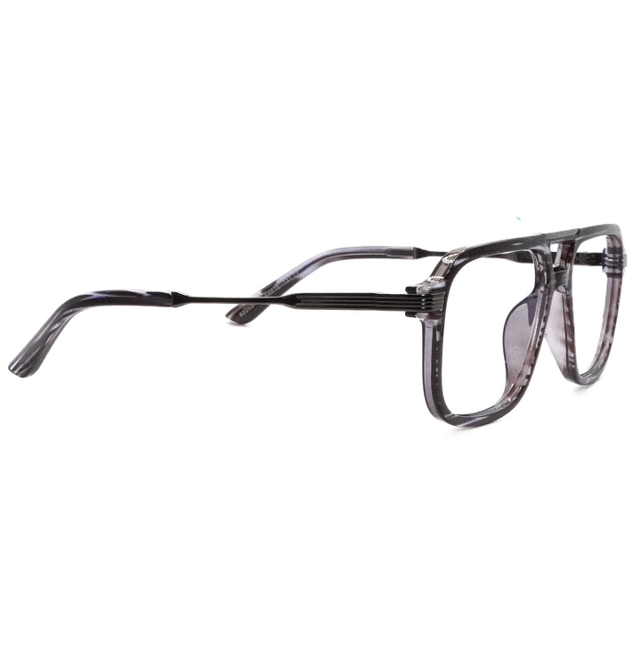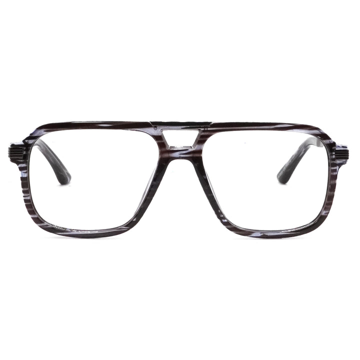 Armazón rectangular tipo aviador en acetato grueso, con un acabado jaspeado que resalta su estilo urbano y retro.